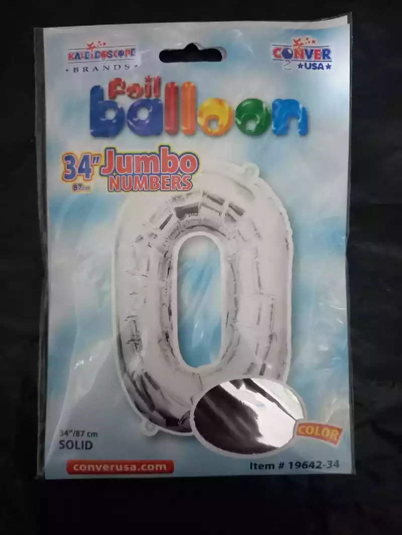 GLOBO FOIL NUMERO CERO PLATA JUMBO