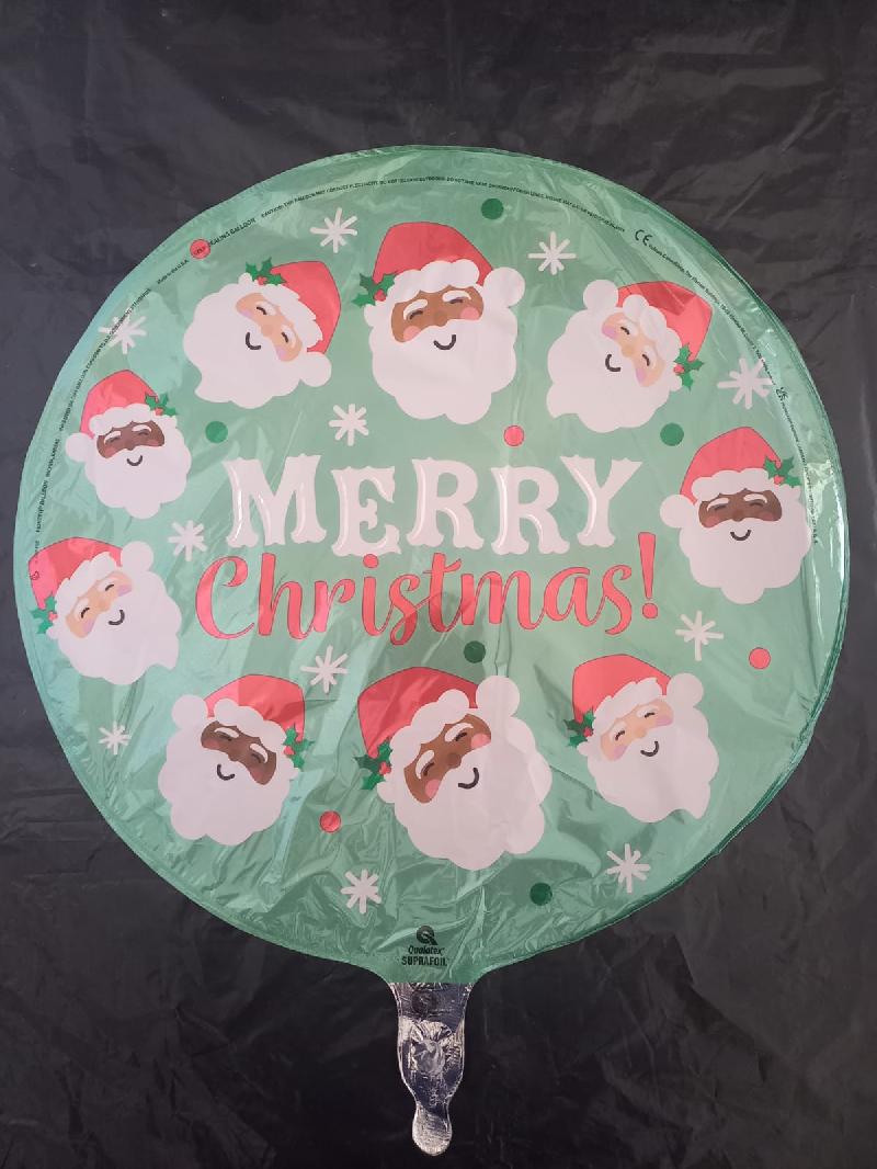 Descripción: GLOBO REDONDO VERDE AGUA MERRY CHRISTMAS! SANTAS