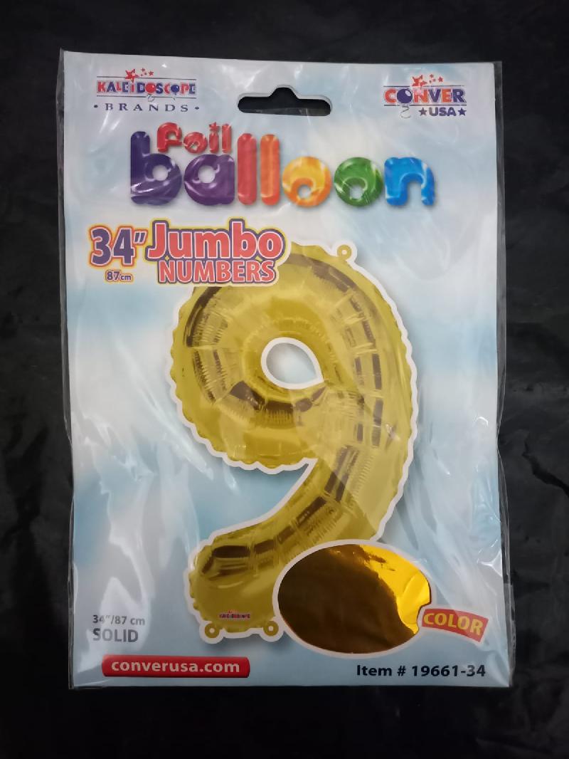 GLOBO FOIL NUMERO NUEVE JUMBO ORO