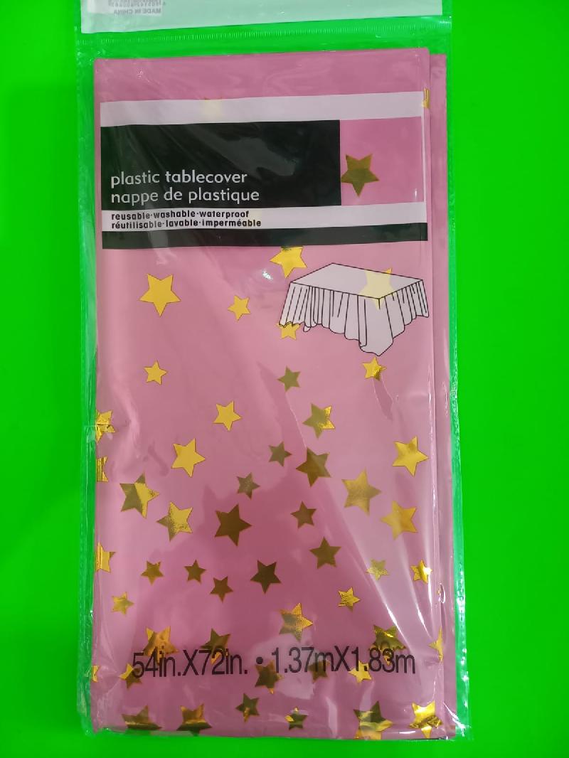 Mantel de plastico rosa estrellas oro